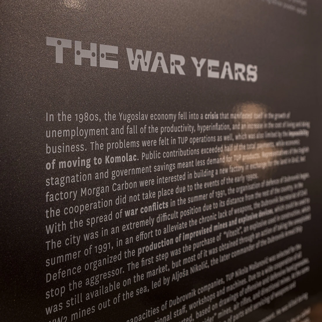Istraživačko-izložbenI projekt 70 godina TUP-a čine izložbe ‘Dubrovački crni dijamant’ (Muzeja crvene povijesti) i ‘Crni stup društva’ (TUP d.d.) autora Ivana Luja i Ivice Kipre (povijesno-antropološki segment) i Kristine Mirošević i Pera Mrnarevića (likovni postav i grafički dizajn).